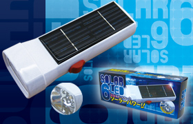 太陽光や蛍光灯などの光を利用して充電できるLED6個搭載したライト。緊急時・非常時などにあらゆる場面でとても便利なソーラーライトです。